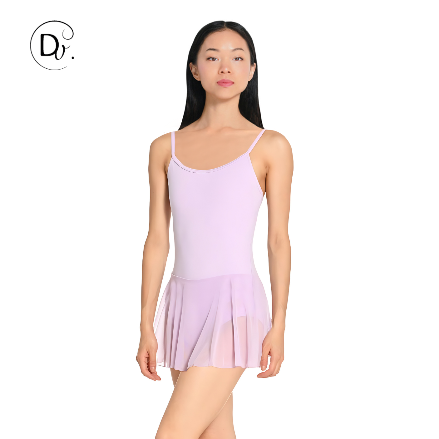 Justaucorps à manches ¾ avec décolleté bateau sans élastique. Combiné avec du tulle floqué assorti sur